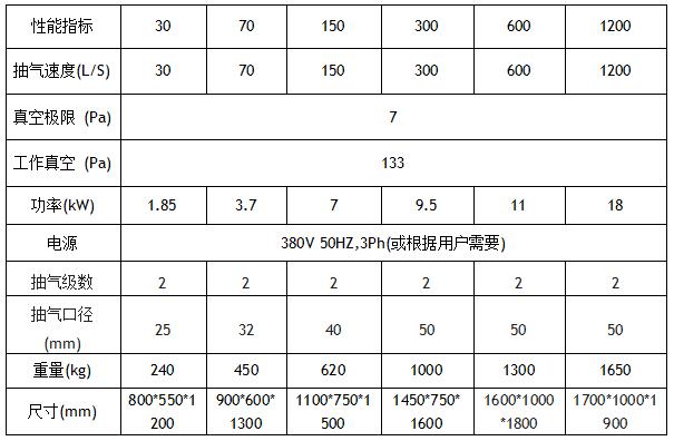 并聯真空泵羅茨泵多級真空抽氣機組參數: