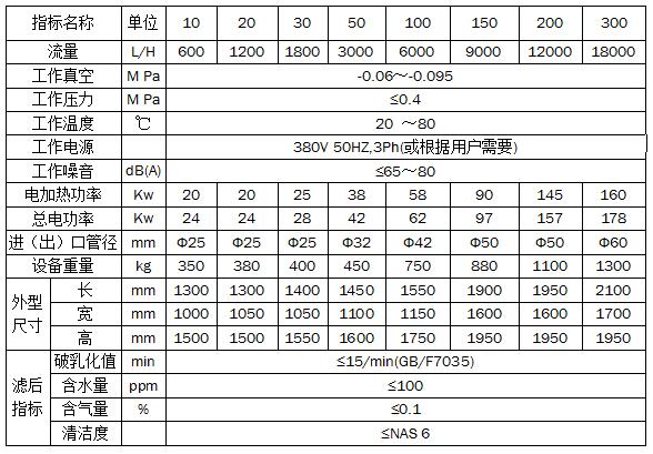 T系列多功能移動真空濾油機參數: