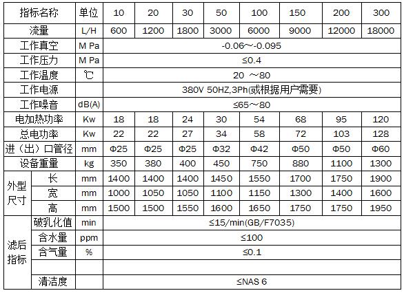 小型真空濾油機參數(shù):