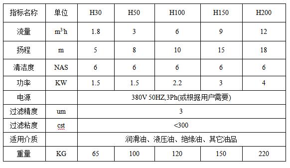 H系列液壓油移動(dòng)式濾油機(jī)參數(shù):
