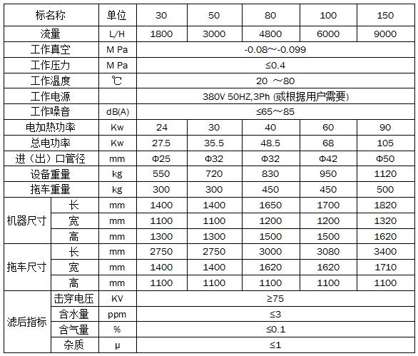 ZYD系列車載拖車式雙級真空濾油機技術參數表: